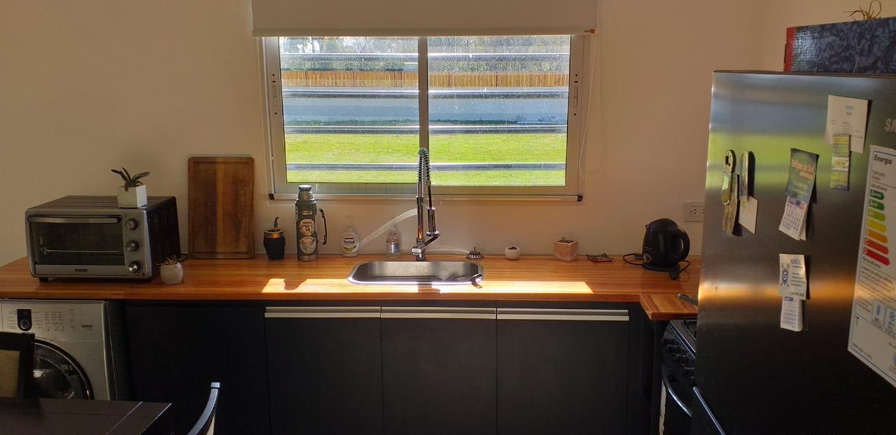 Se ingresa a la casa a través de la cocina comedor con living integrado. Posee un baño completo y un dormitorio.