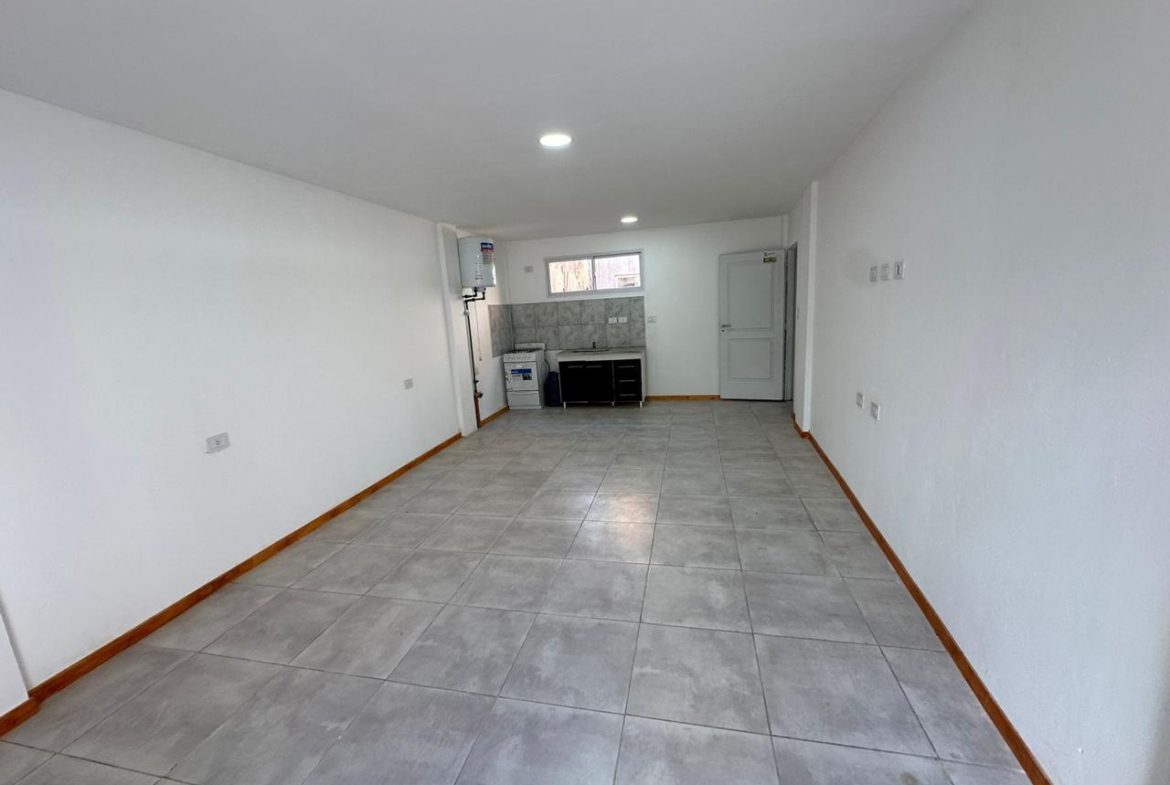 Ubicado en planta baja al contra frente cuenta con cocina a gas, termo tanque eléctrico, mesada, mueble bajo mesada, canilla monocomando, conexiones para lava ropas, baño completo con ducha y un patio.